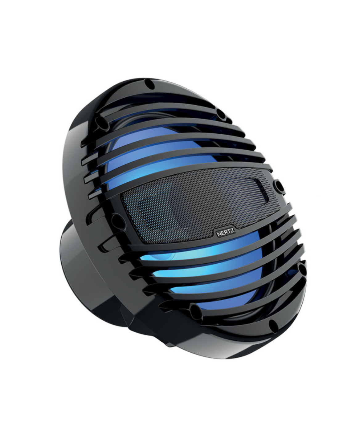 Hertz HMX 8-LD-TC (coppia) sono altoparlanti coassiali nautici da 200 mm con illuminazione LED RGB integrata e griglia nera sportiva.