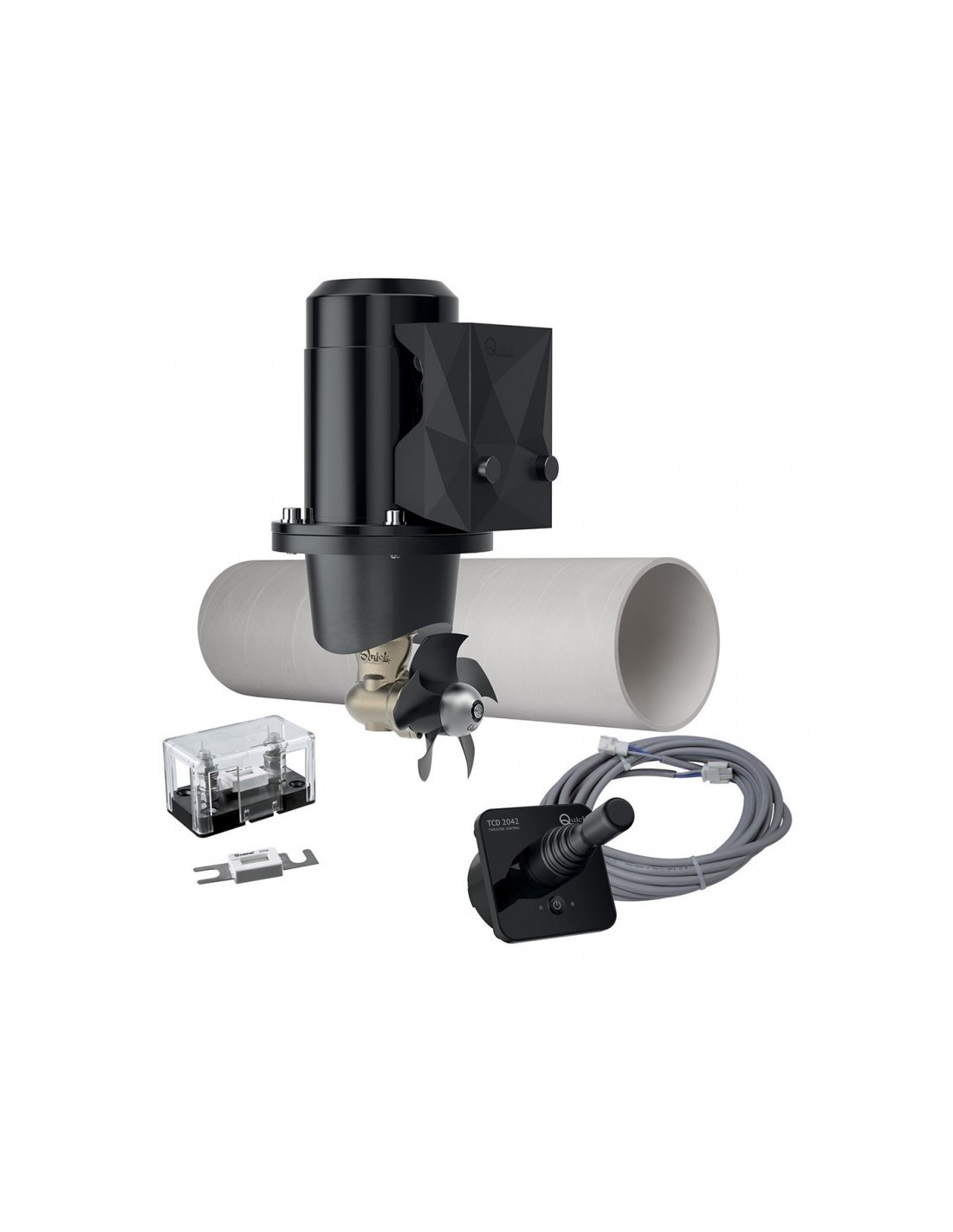 kit completo elica di prua, tunnel, comando, prolunga, fusibile e portafusibile.