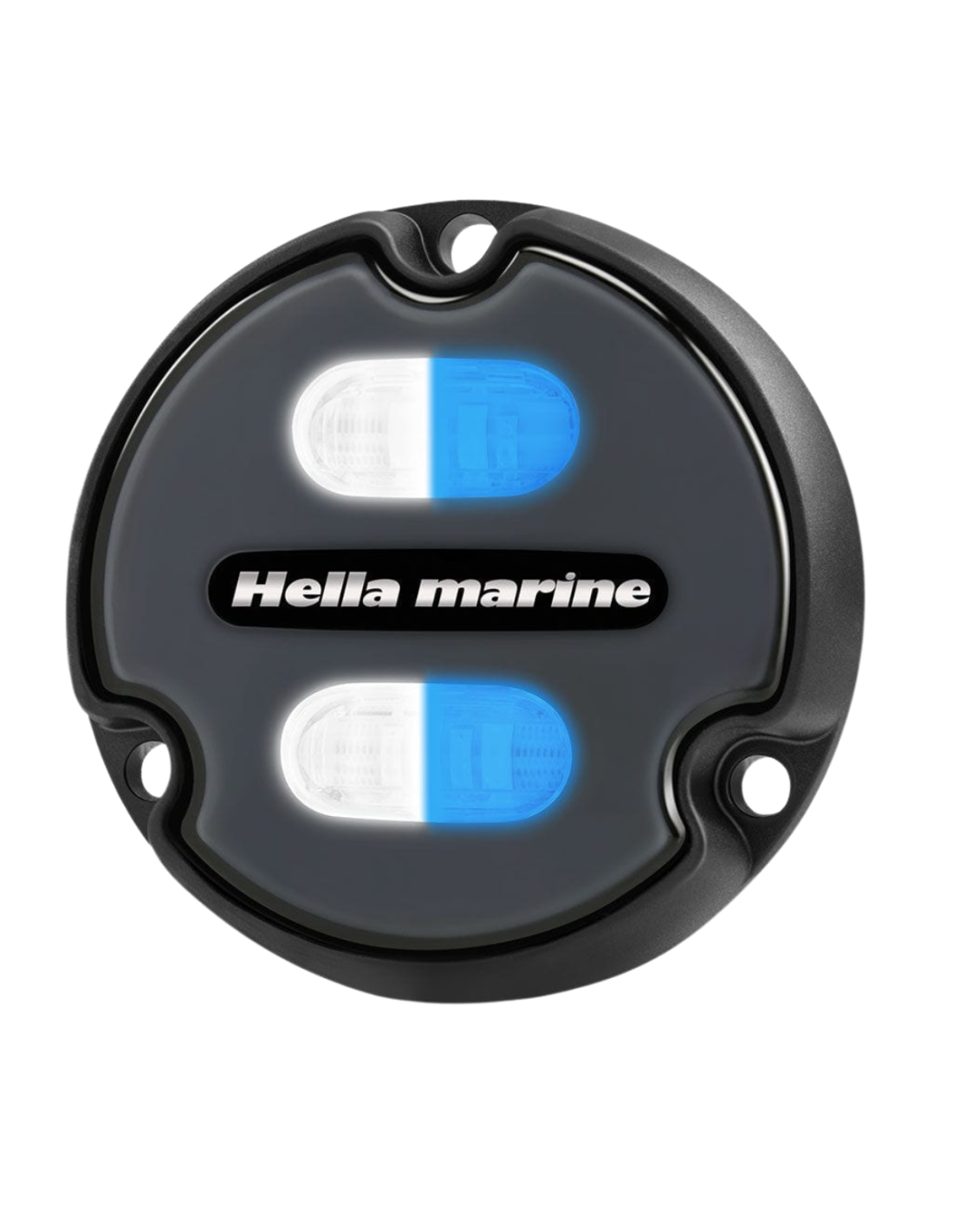 Faro subacqueo a LED Hella Marine Apelo A1 con corpo colore Carbon e luce Bianco/Blu.