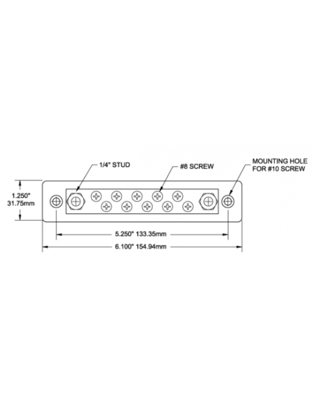 Morsettiera Bus Bar 150A con viti e perni in acciaio Inox, 10 terminali
