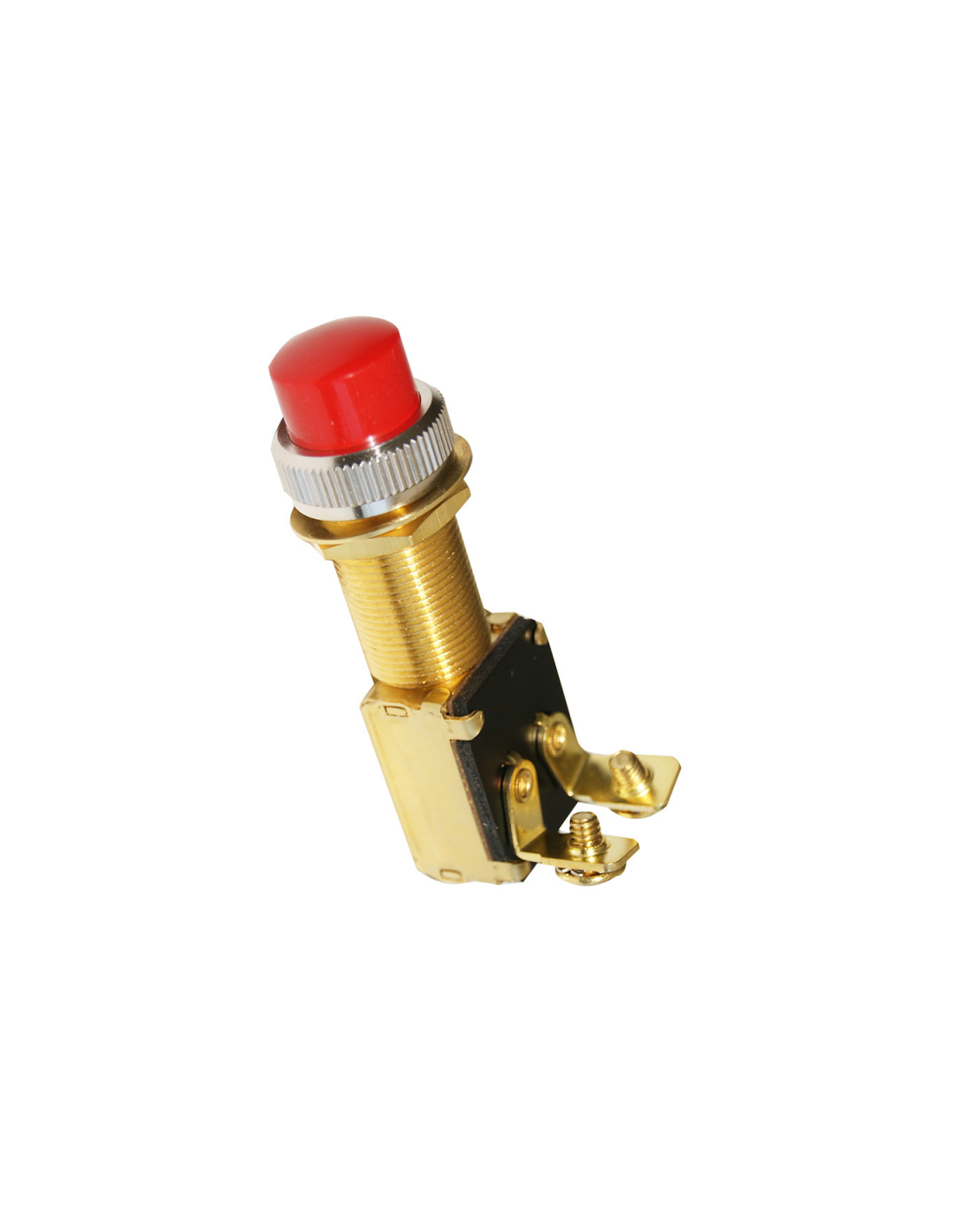 Interruttore a pulsante con copripulsante in gomma rosso.