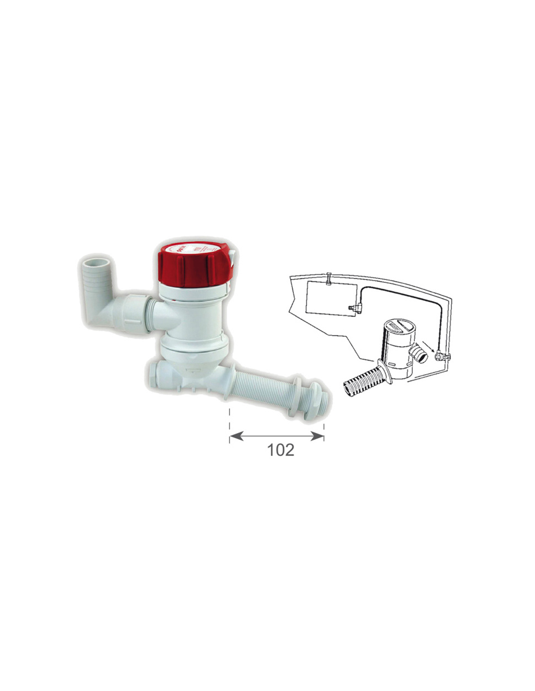 Il duplice attacco permette l’areazione contemporanea di due vasche del vivo, oppure di inserire la pompa per lavaggio ponte.