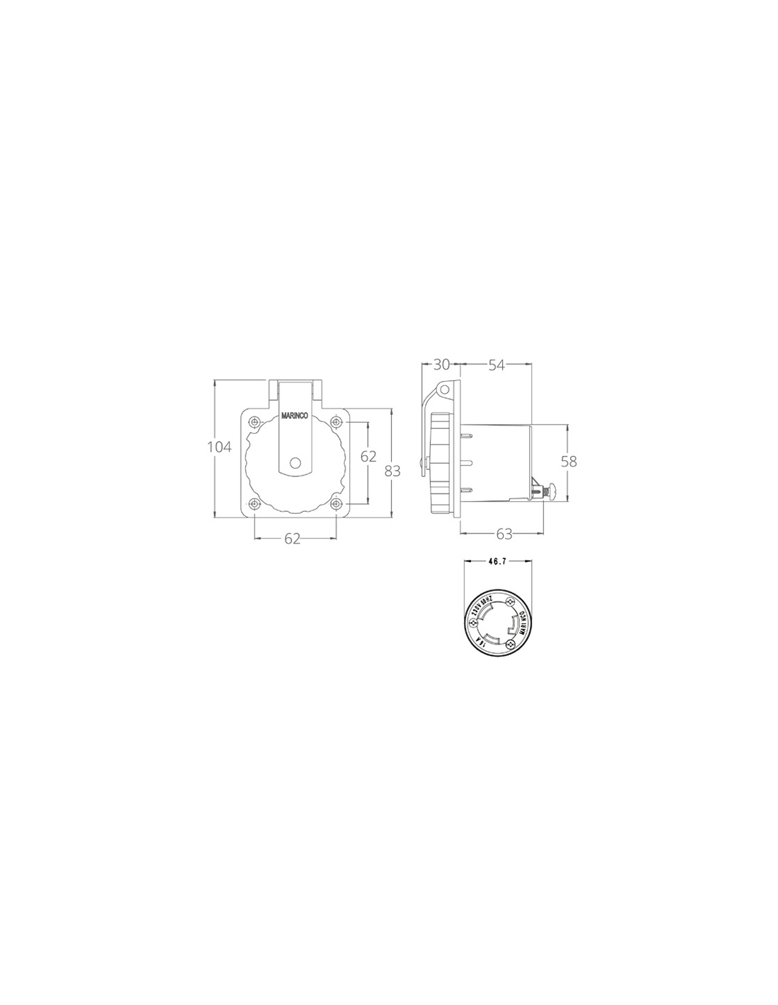 Marinco spina ad inacasso INOX 316 2P+T IP54