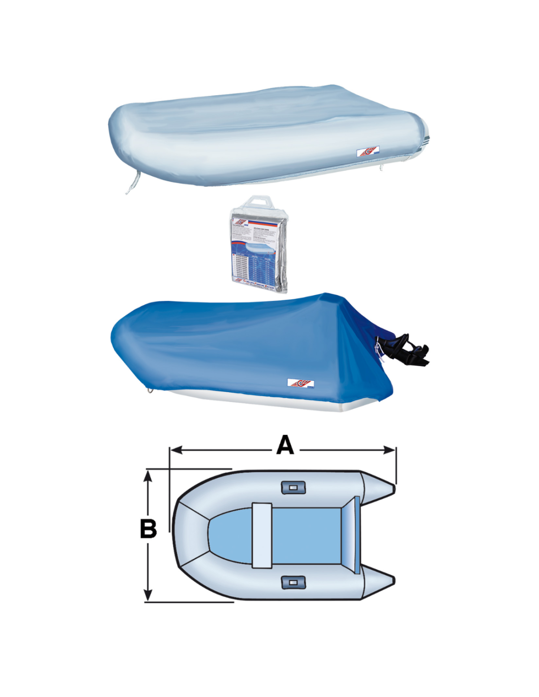 Copri Gommone fabbricato in tessuto poliestere antimuffa, traspirante, resistente all’acqua ed ai raggi UV.