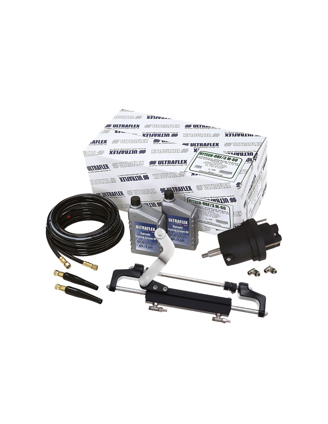 Ultraflex Hytec-OBF3 è una timoneria idraulica venduta in Kit pronto per l'installazione è completa di tubazioni per motori fuoribordo Fino a 175HP di potenza,