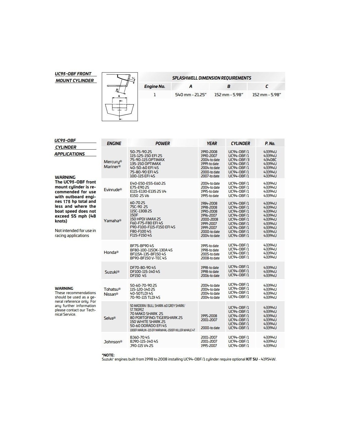 Il cilindo Ultraflex UC95-OBF3 a montaggio frontale per la timoneria idraulica, è indicato per motori fuoribordo fino a 175 hp totali,