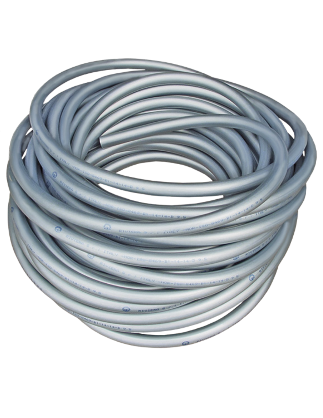 questo tubo Ø 8 mm si distingue per la costruzione a doppio strato con rivestimento esterno in similgomma e fodera interna in poliuretano,