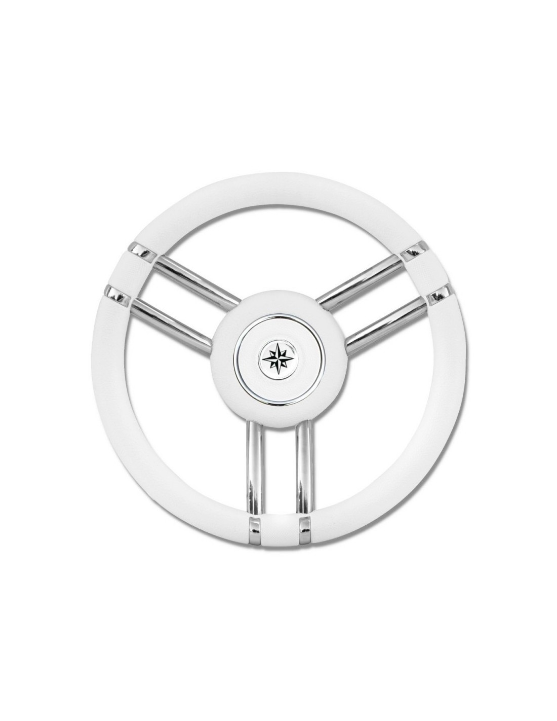Mozzo e coperchio in alluminio ricoperto di poliuretano con logo della rosa dei venti al centro.